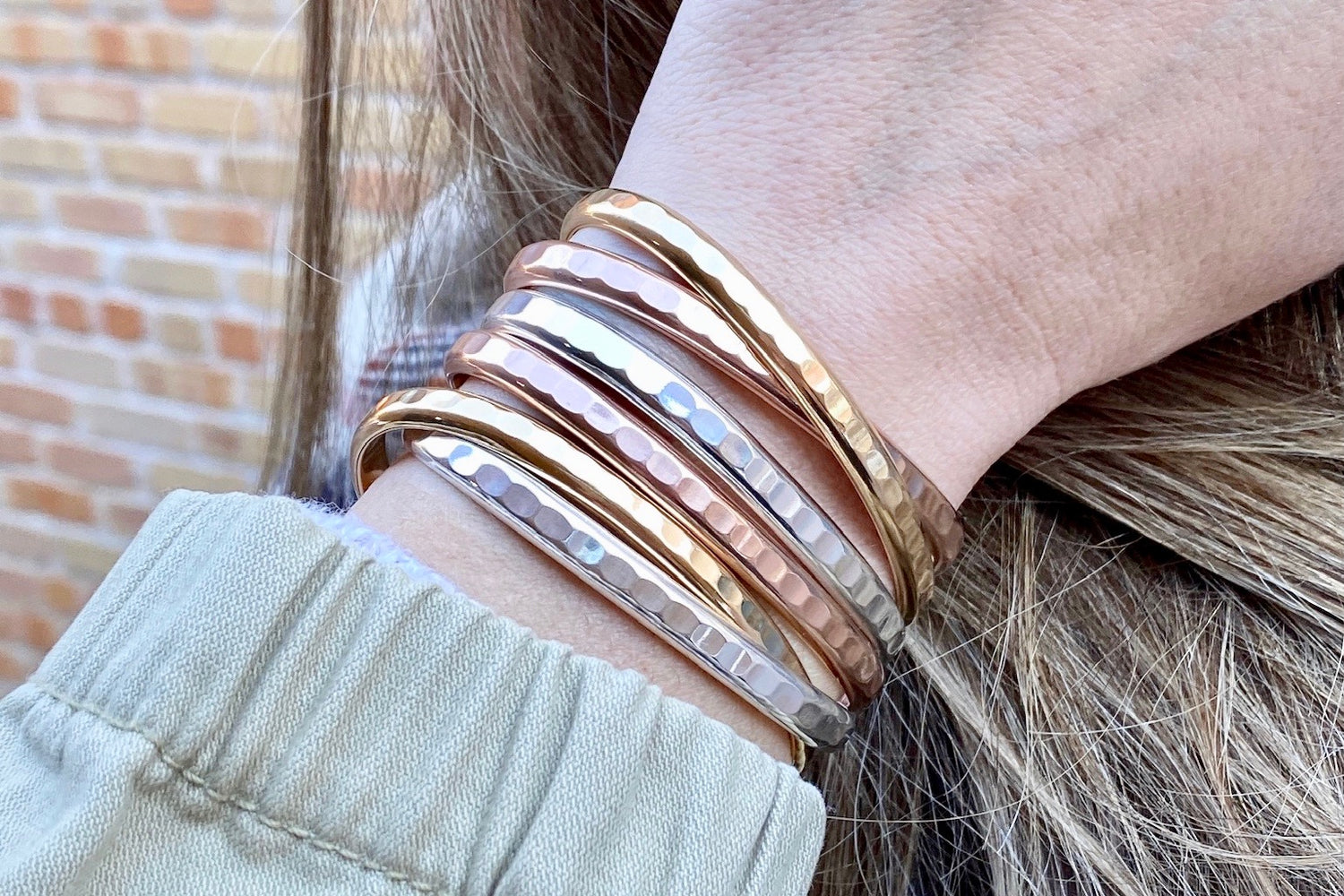 Thin Hammered Cuff Bracelets, Gold, Rose Gold, Silver, Niobium (350cur.350str.8)